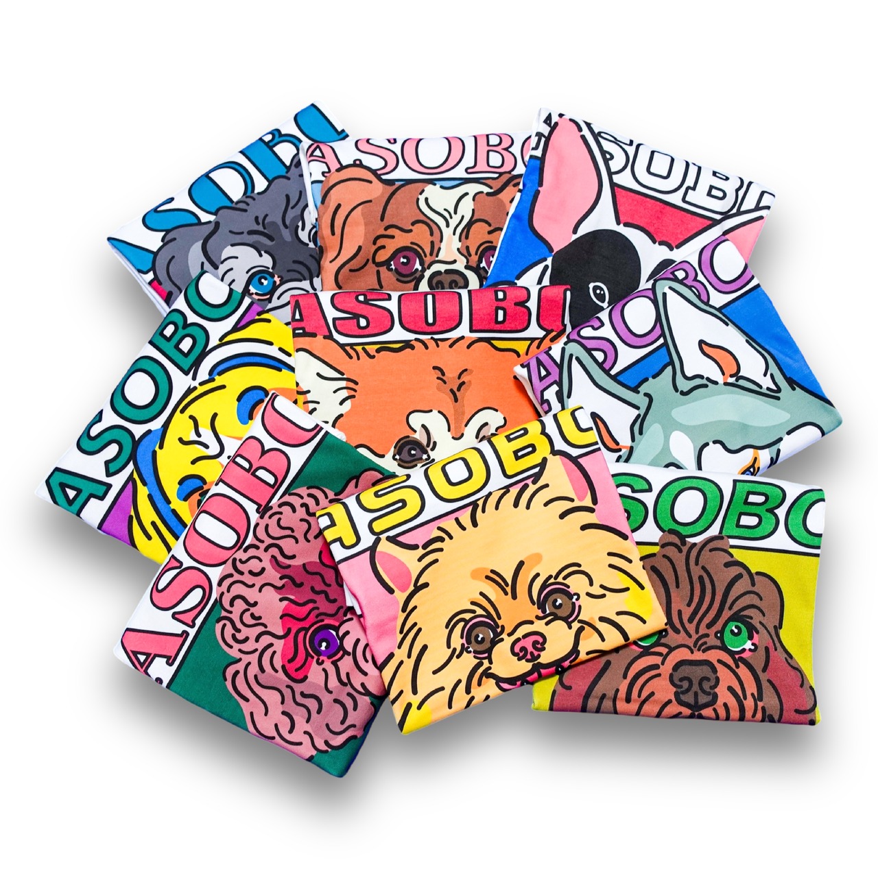 9種類の犬たちが、Tシャツに大集合!それぞれの犬の個性が光るデザインで、犬好きなら思わず手に取りたくなる一枚。お気に入りの犬を見つけて一緒にお出かけしよう!か?